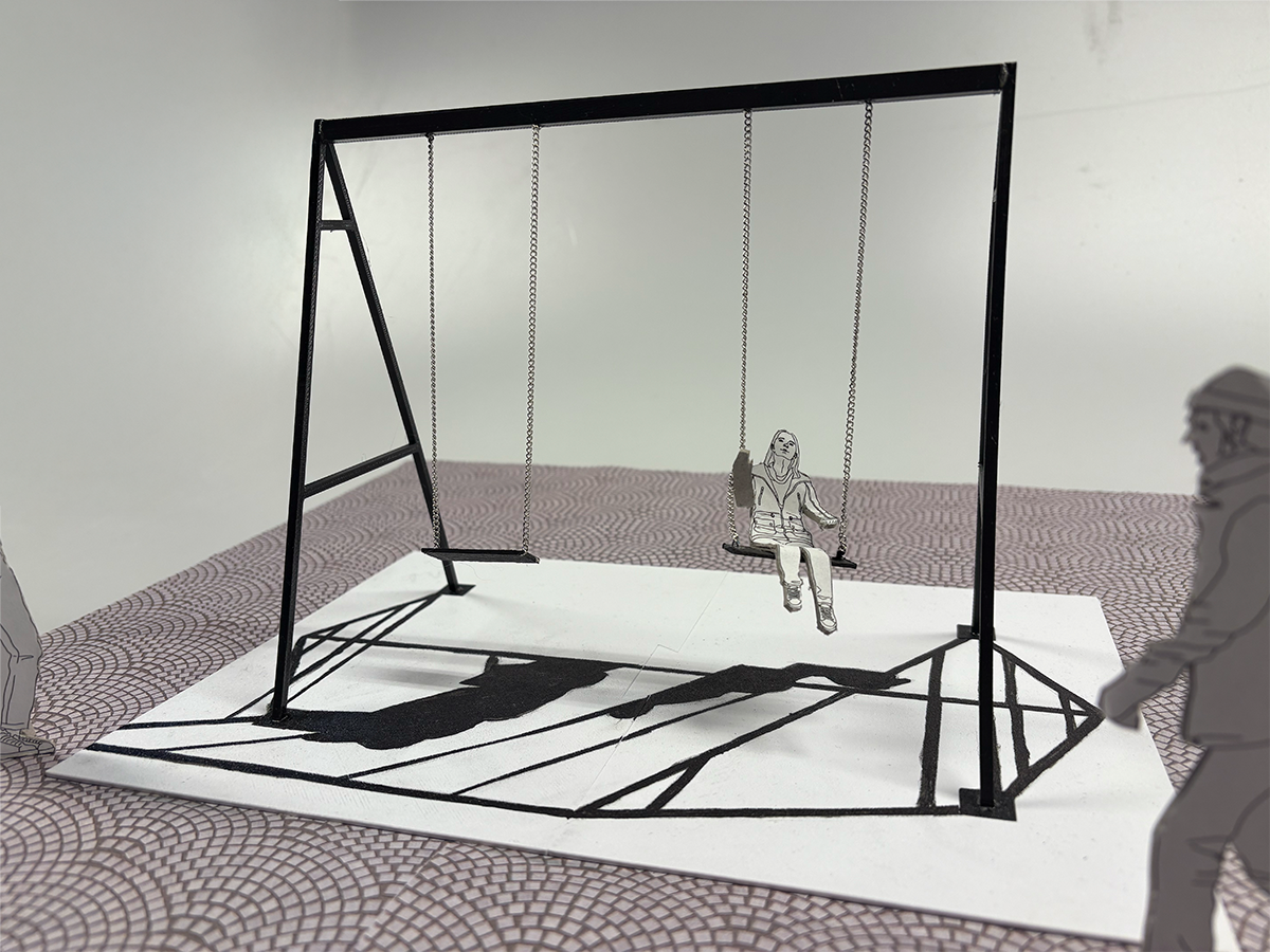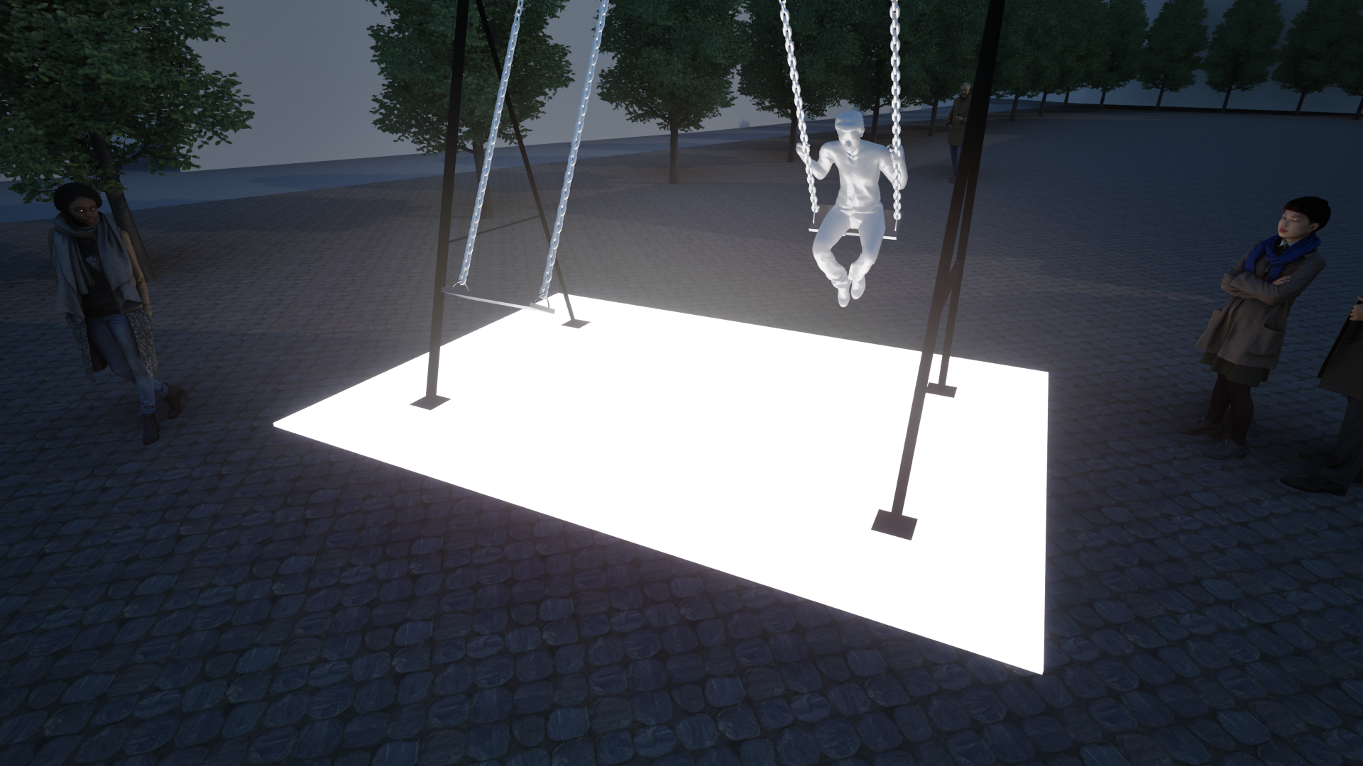 Swing of Absence is a public installation about grief and the missing of people who we lost because of suicide. This public installation is located at the Simonstevin Square in Bruges. For this installation I decided to make something very simple but very powerfull. The message is quite heavy, this was done because I really want to get people to know that the high suicide numbers in Flanders (Belgium) is a big problem.